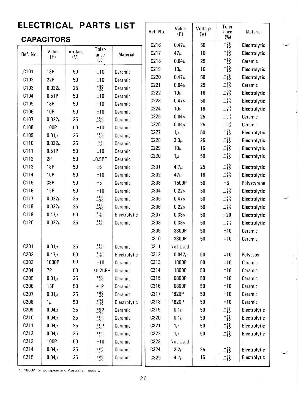 Realistic STA-95 - Electrical Parts List; Component Listings