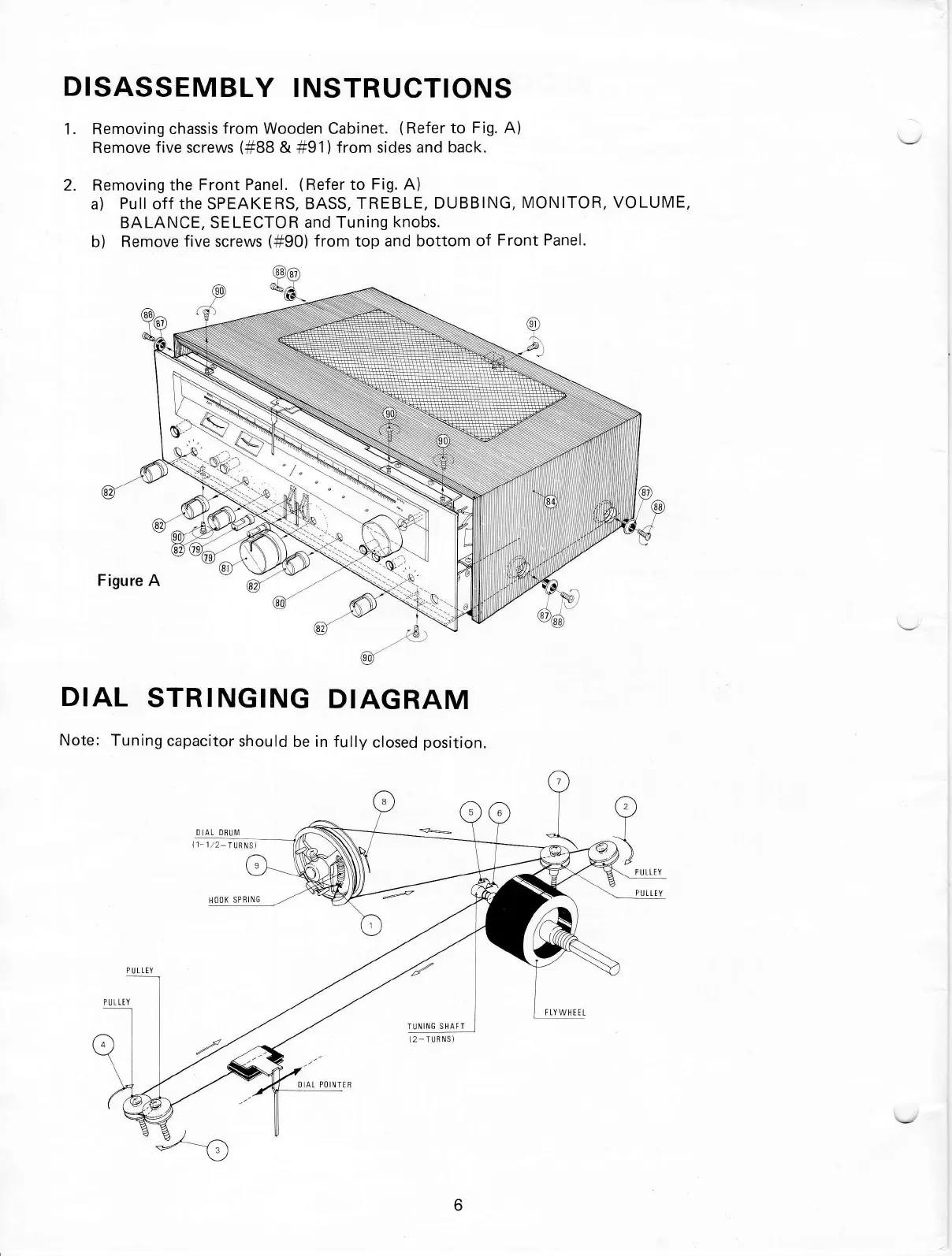 Realistic STA-95 - Disassembly Instructions; Chassis and Front Panel Removal; Dial Stringing Diagram; Tuning Mechanism Stringing