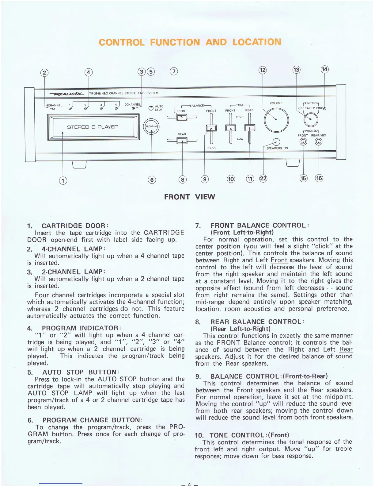 Realistic TR-284B - Front Panel Controls and Functions; Front Panel Controls Overview