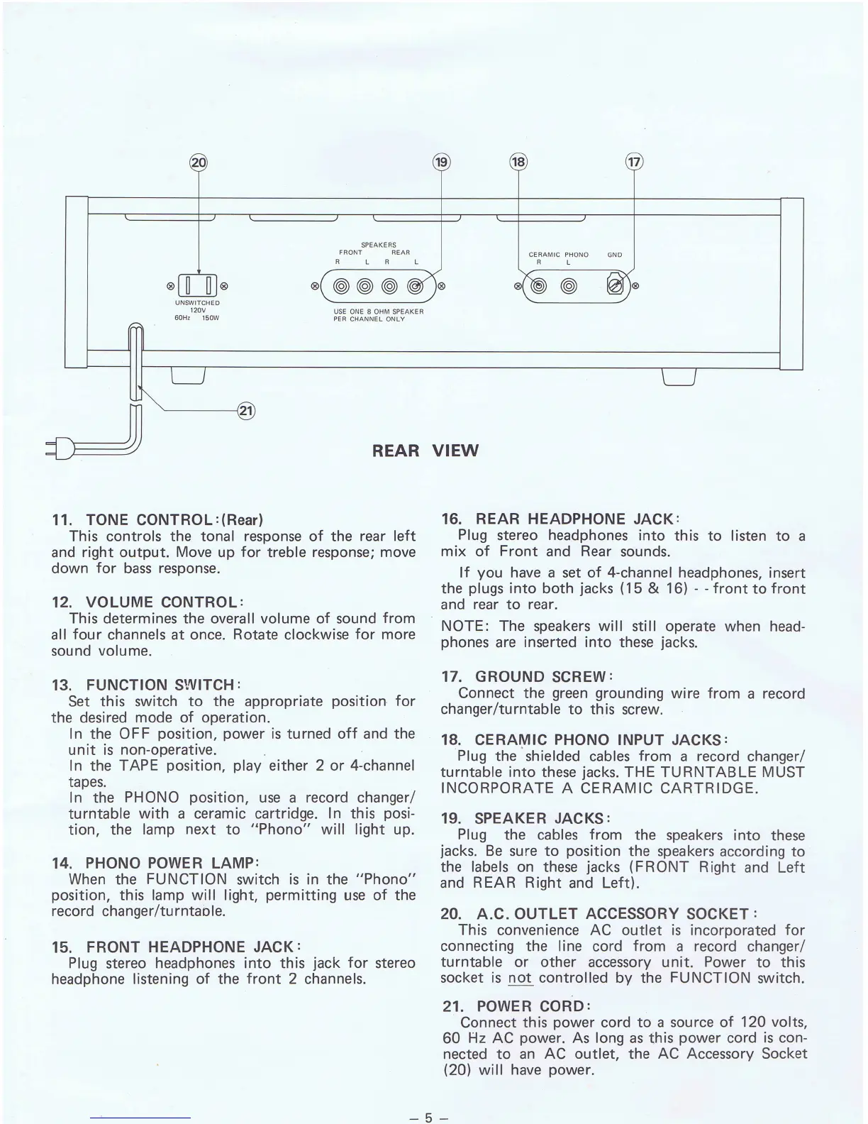 Realistic TR-284B - Rear Panel Controls and Connections; Rear Panel Controls Overview