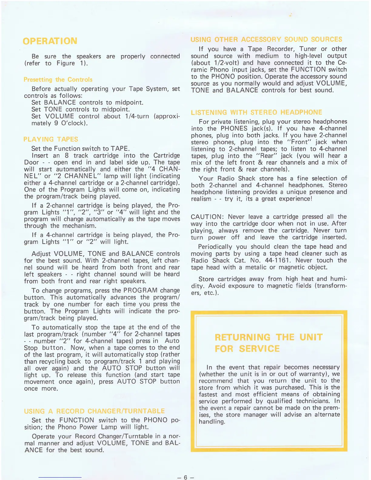 Realistic TR-284B - TR-284 B Operation Guide; Basic Operation and Tape Playback; Advanced Operation and Maintenance