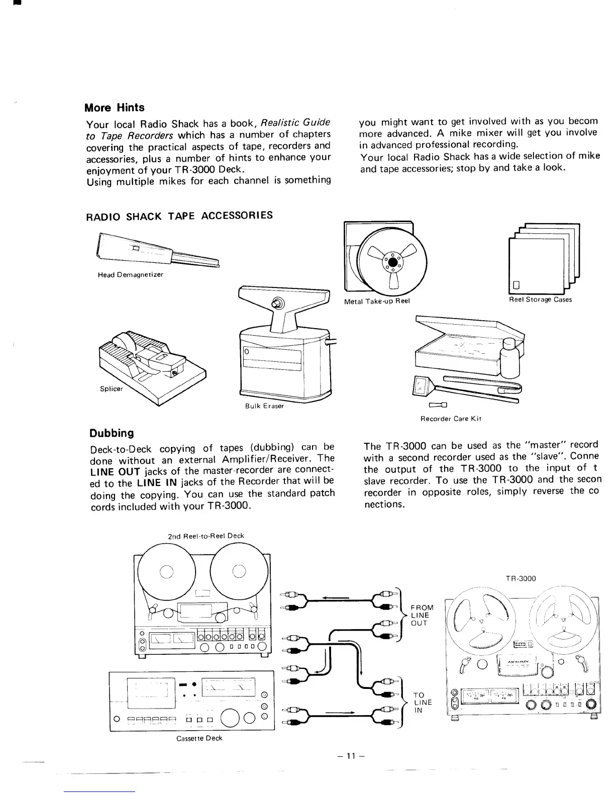 Realistic TR-3000 - More Hints; Dubbing; RADIO SHACK TAPE ACCESSORIES