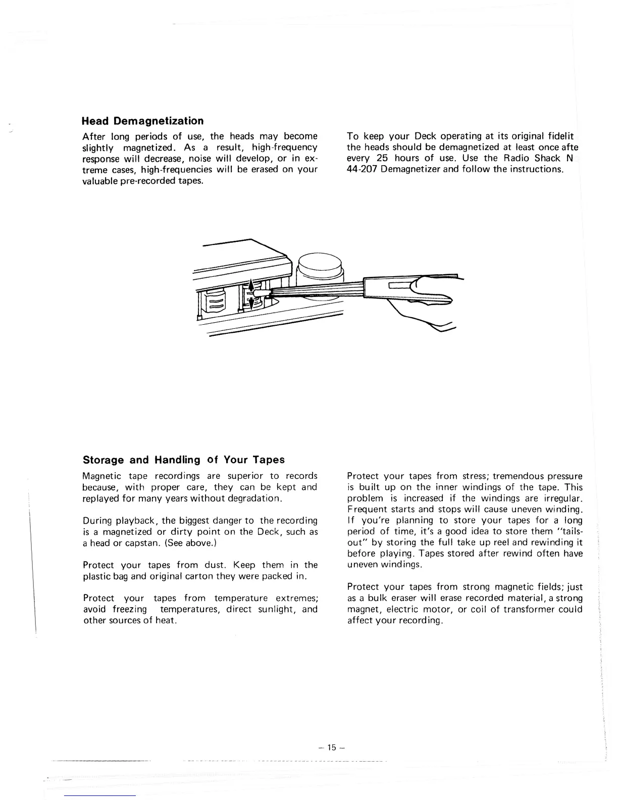 Realistic TR-3000 - Head Demagnetization; Storage and Handling of Your Tapes