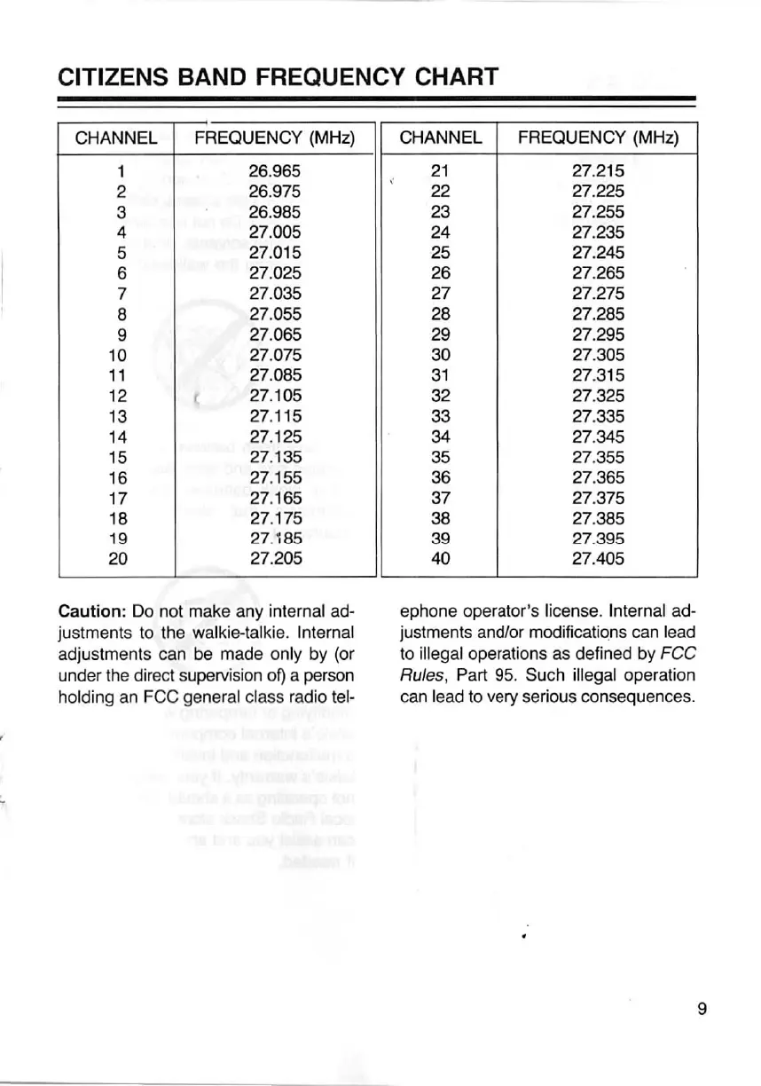 CITIZENS BAND FREQUENCY CHAPT