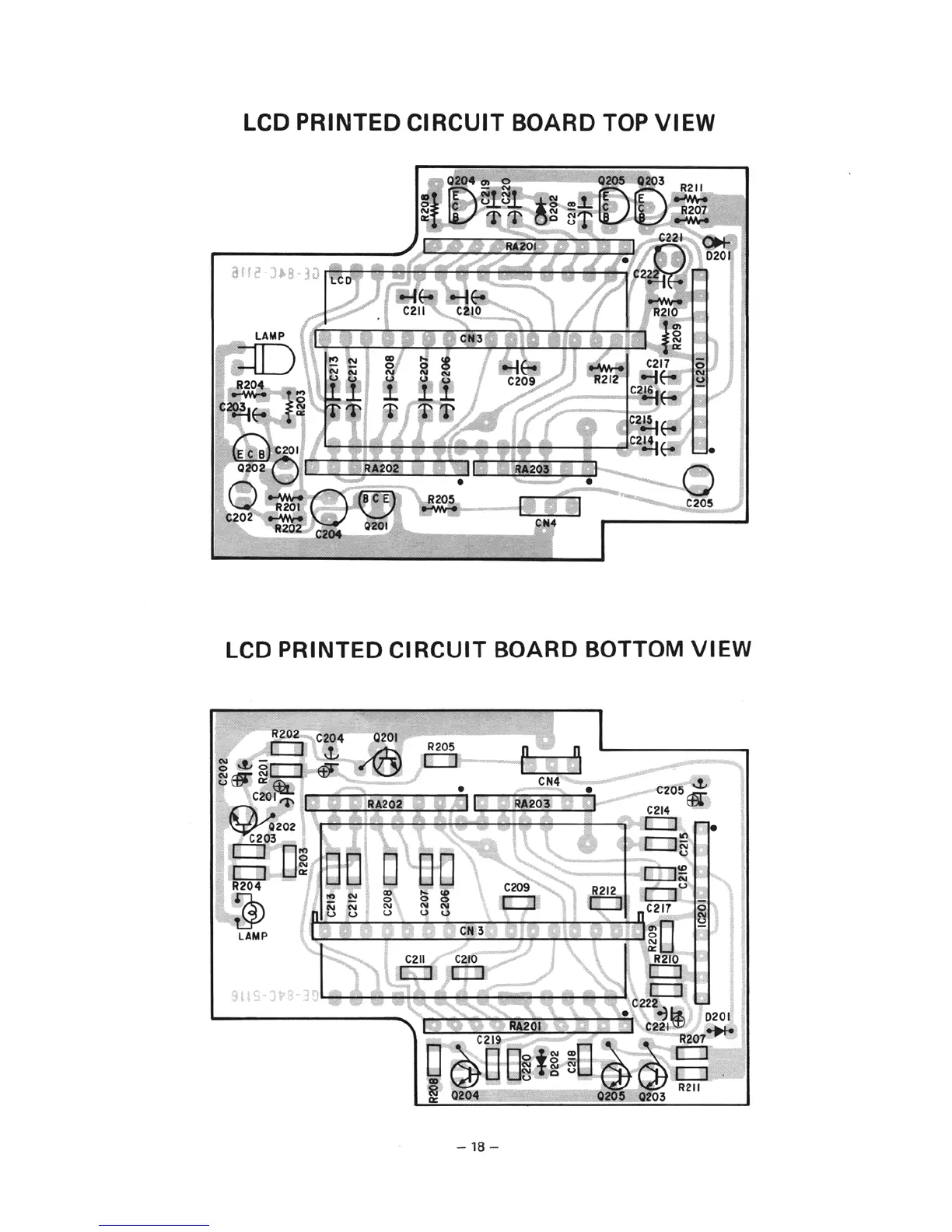 Realistic TRC-216 - LCD Printed Circuit Board Top View; LCD Printed Circuit Board Bottom View