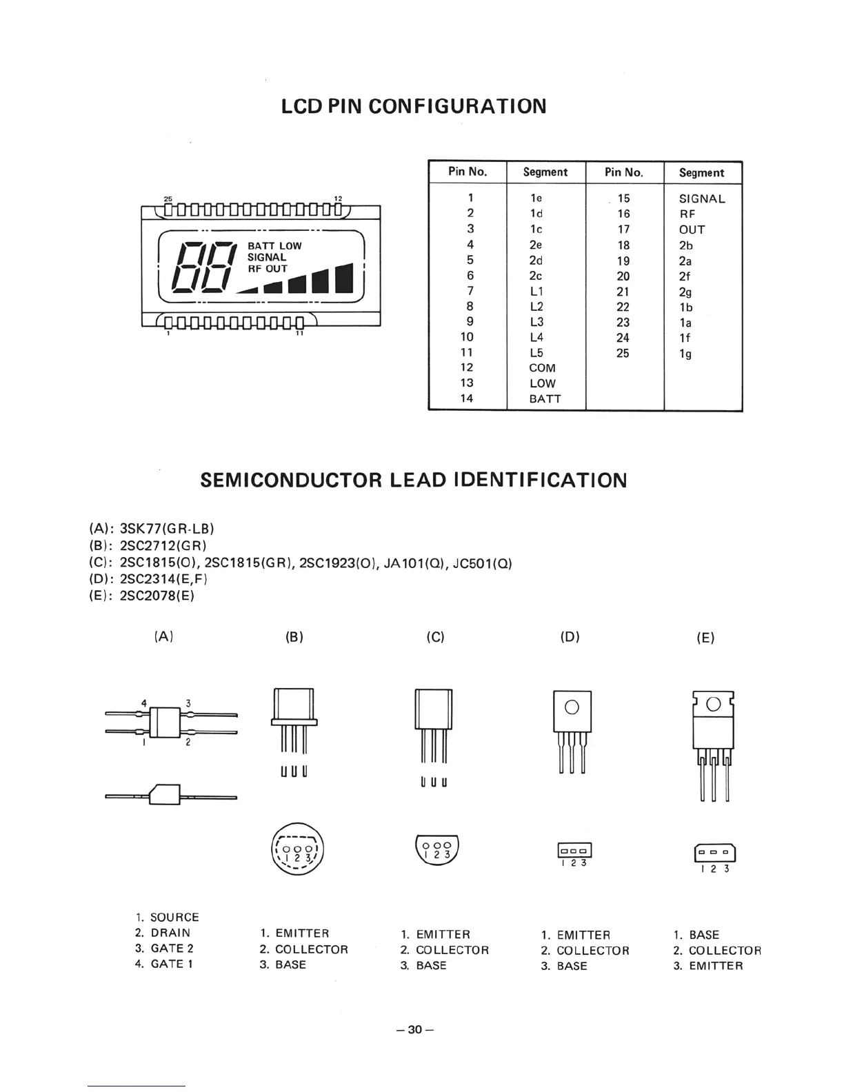 Realistic TRC-216 - LCD Pin Configuration; Semiconductor Lead Identification