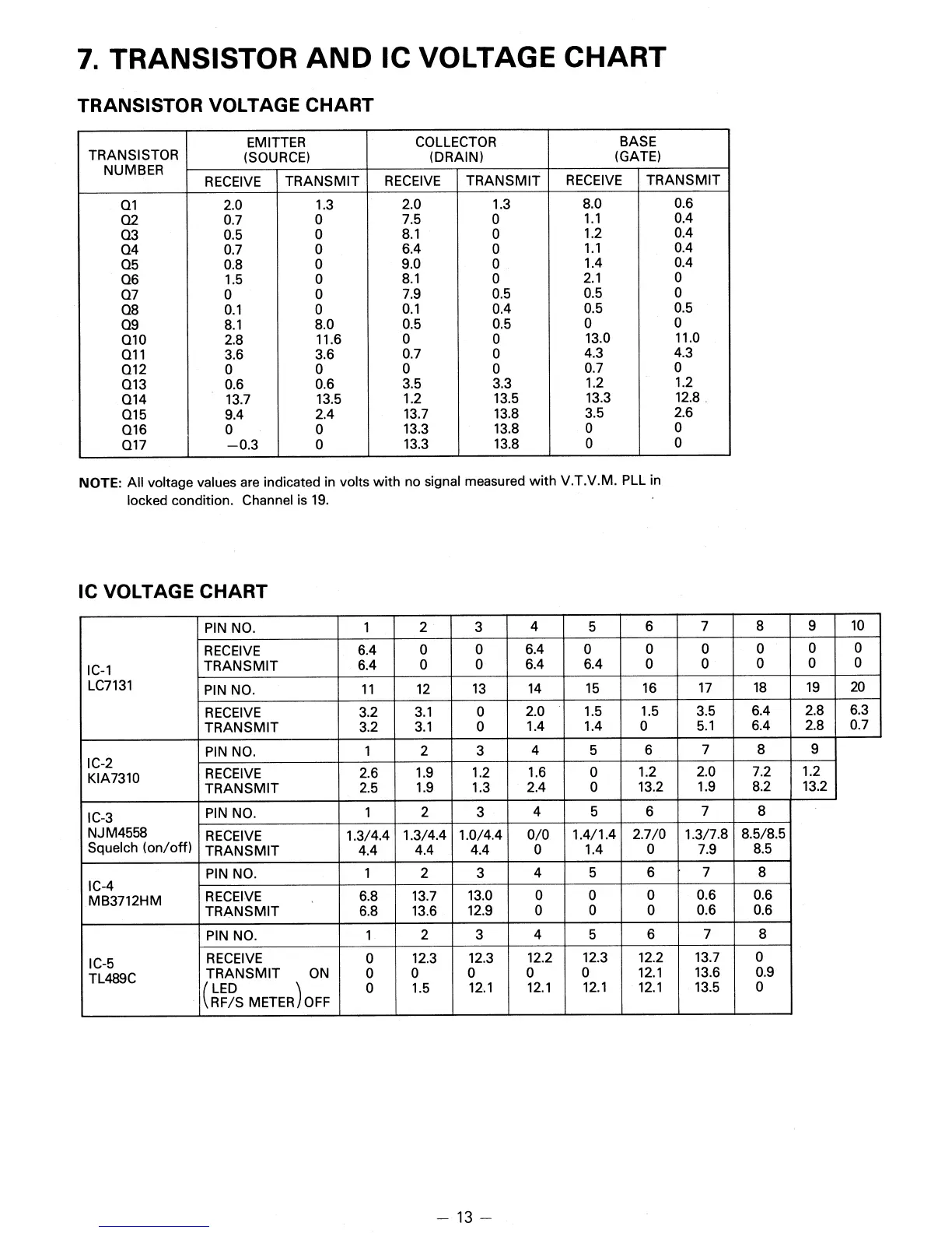 7. TRANSISTOR AND IC VOLTAGE CHART