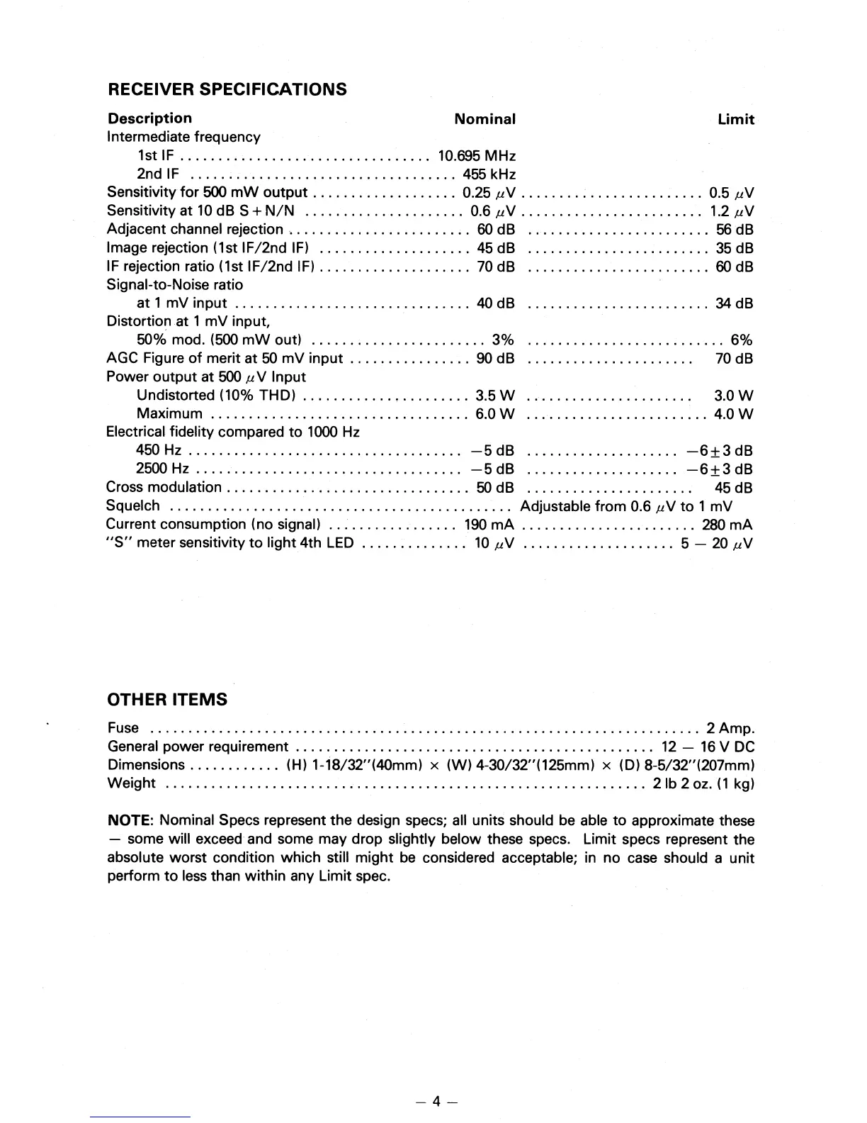 — some will exceed and some may drop slightly below these specs. Limit specs represent the