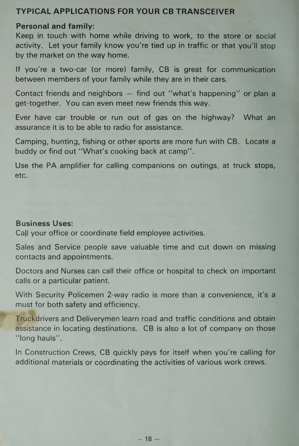Realistic TRC-422A - Typical Applications; Personal and Family Uses; Business and Professional Uses