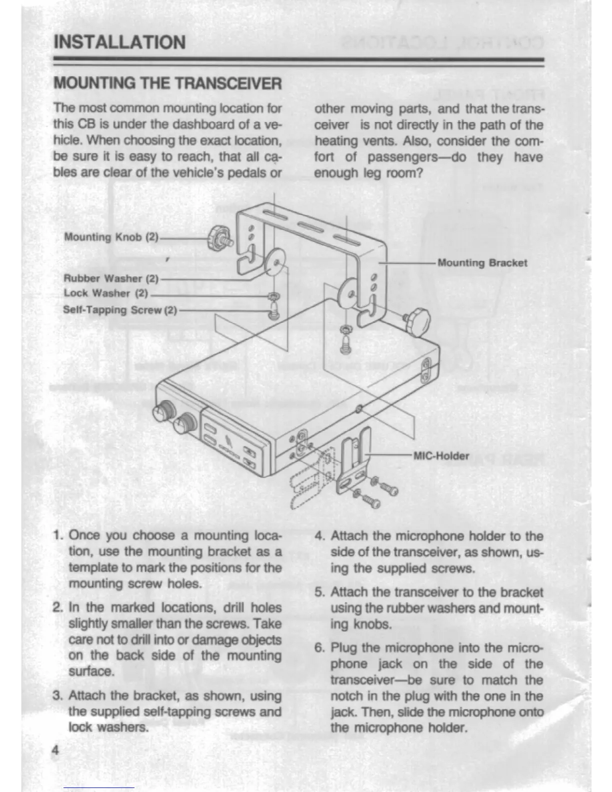 Realistic TRC-430 - Installation; Mounting the Transceiver
