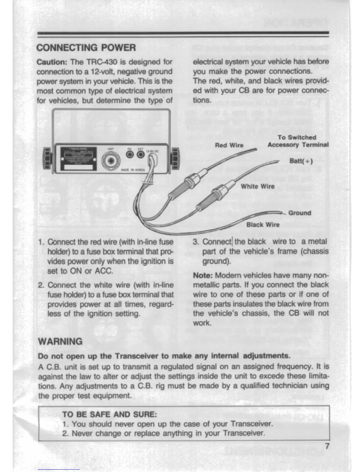 Realistic TRC-430 - Connecting Power; Safety and Maintenance Warnings; General Safety Warnings