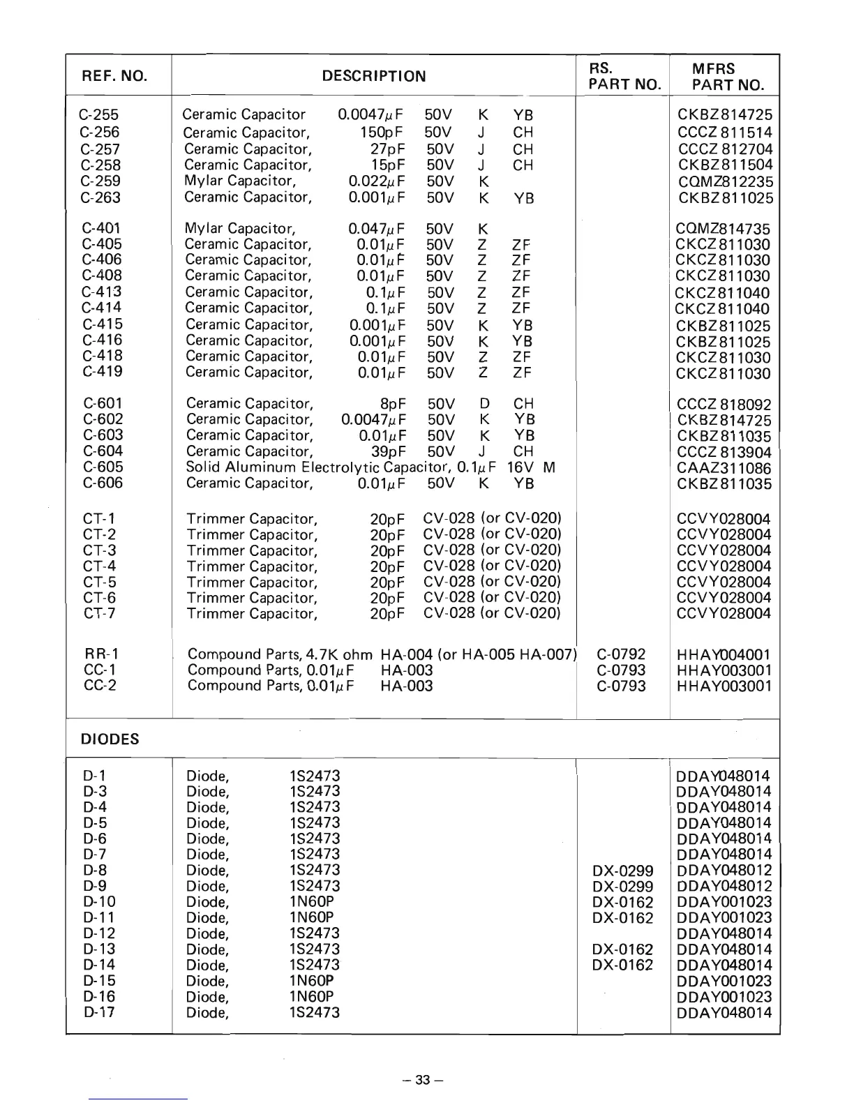 Realistic TRC-449 - Capacitor Specifications (Continued); Trimmer Capacitors and Compound Parts; Diode Specifications