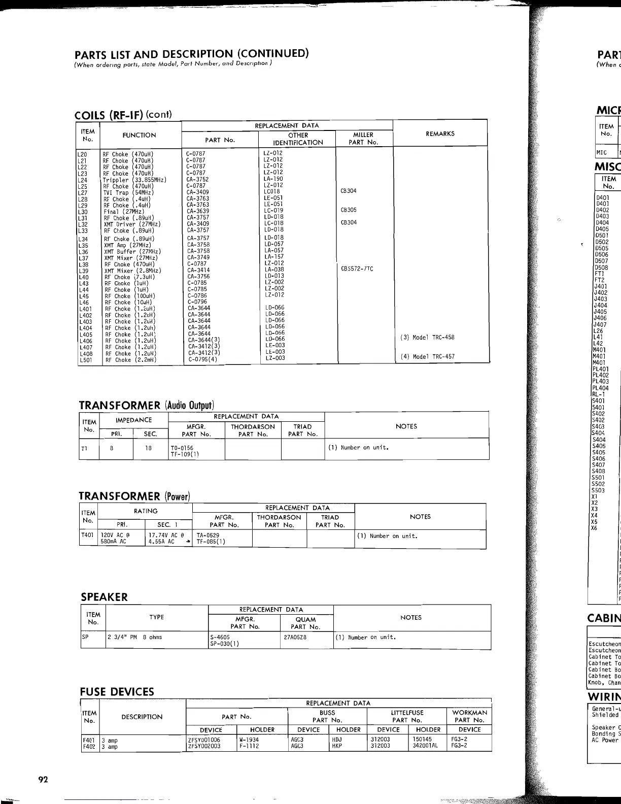 Realistic TRC-457 - PARTS LIST AND DESCRIPTION; COILS (RF-IF); TRANSFORMERS; FUSE DEVICES