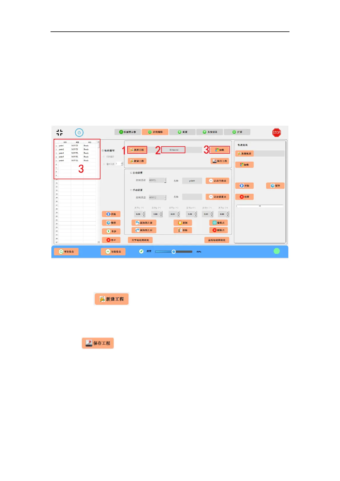 Example: Load an accomplished project file “text.txt”.