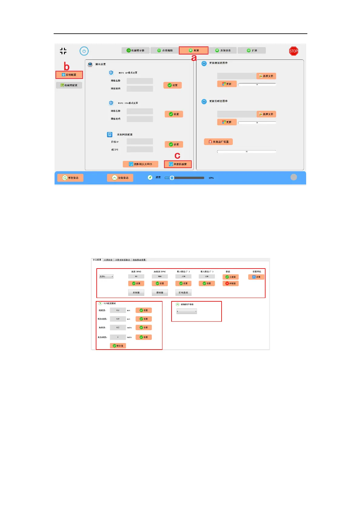 The safety configuration interface mainly configures the joints of the robot and TCP