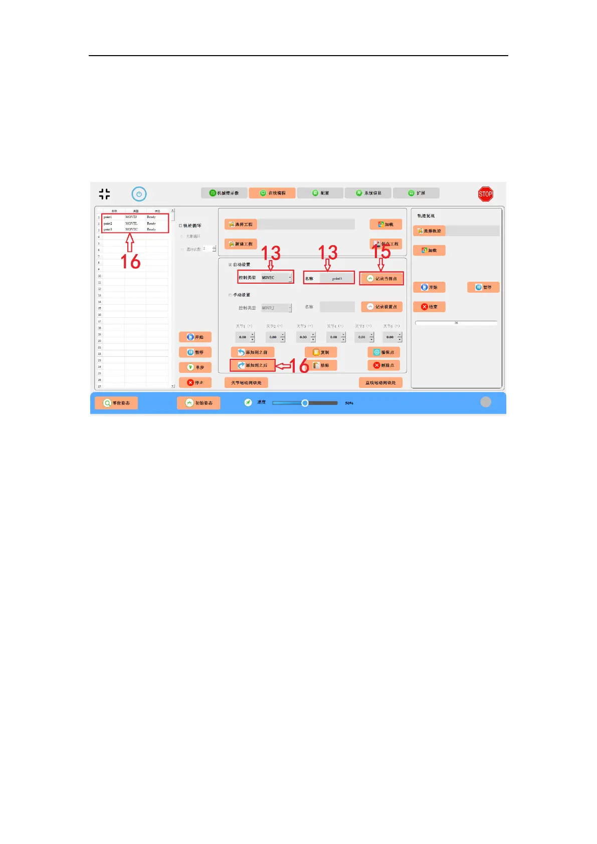 15. Back to “Online Programming” interface and click “Record the Current Point”