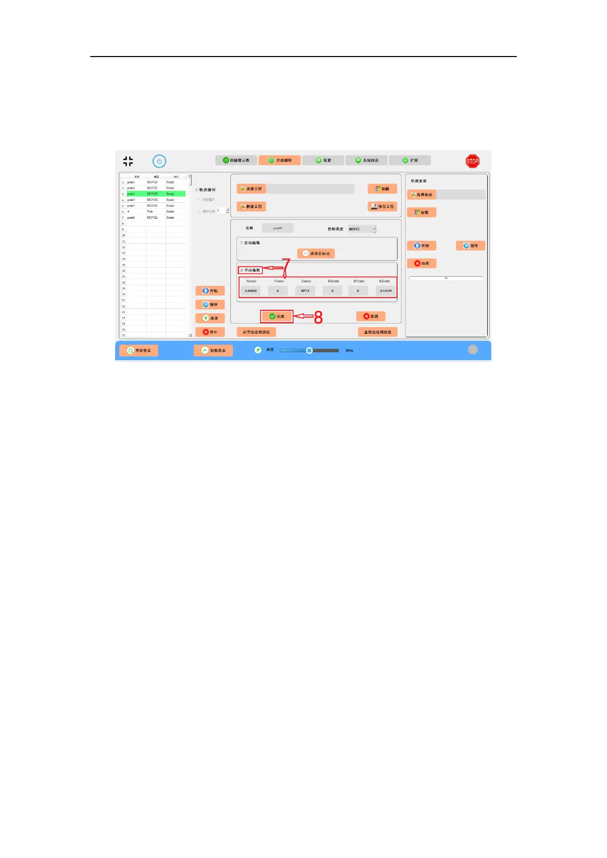 1. To run a program, click the “Start” button and the trajectory tracking will run