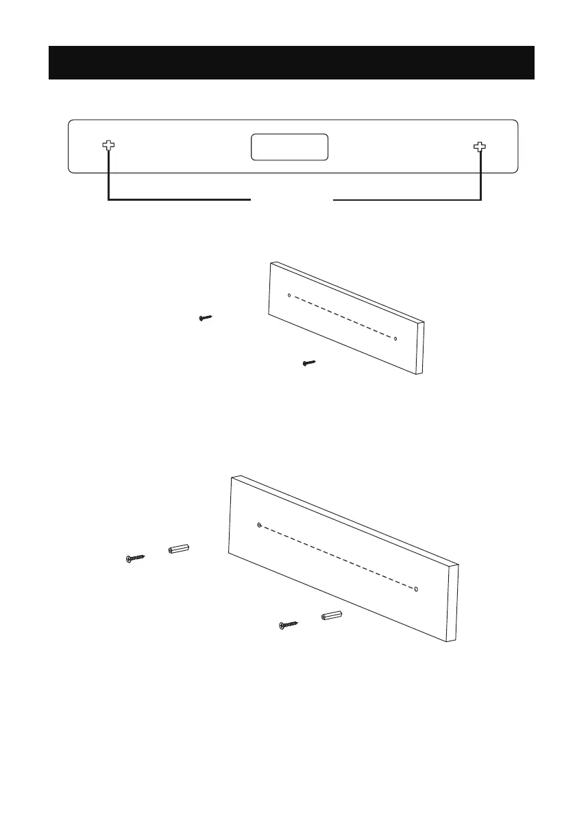 E. Put the sound bar onto the mounting screws, make it firm and stable.
