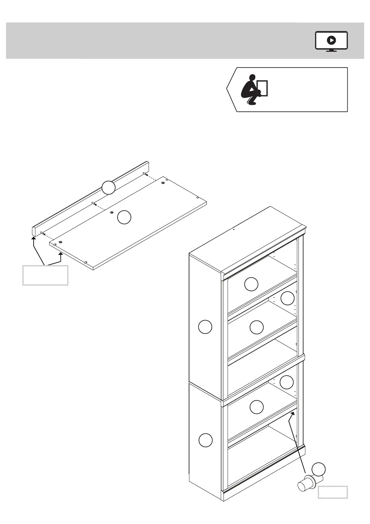 the ENDS (A, B, C, and D). Set the ADJUSTABLE SHELVES (J) onto