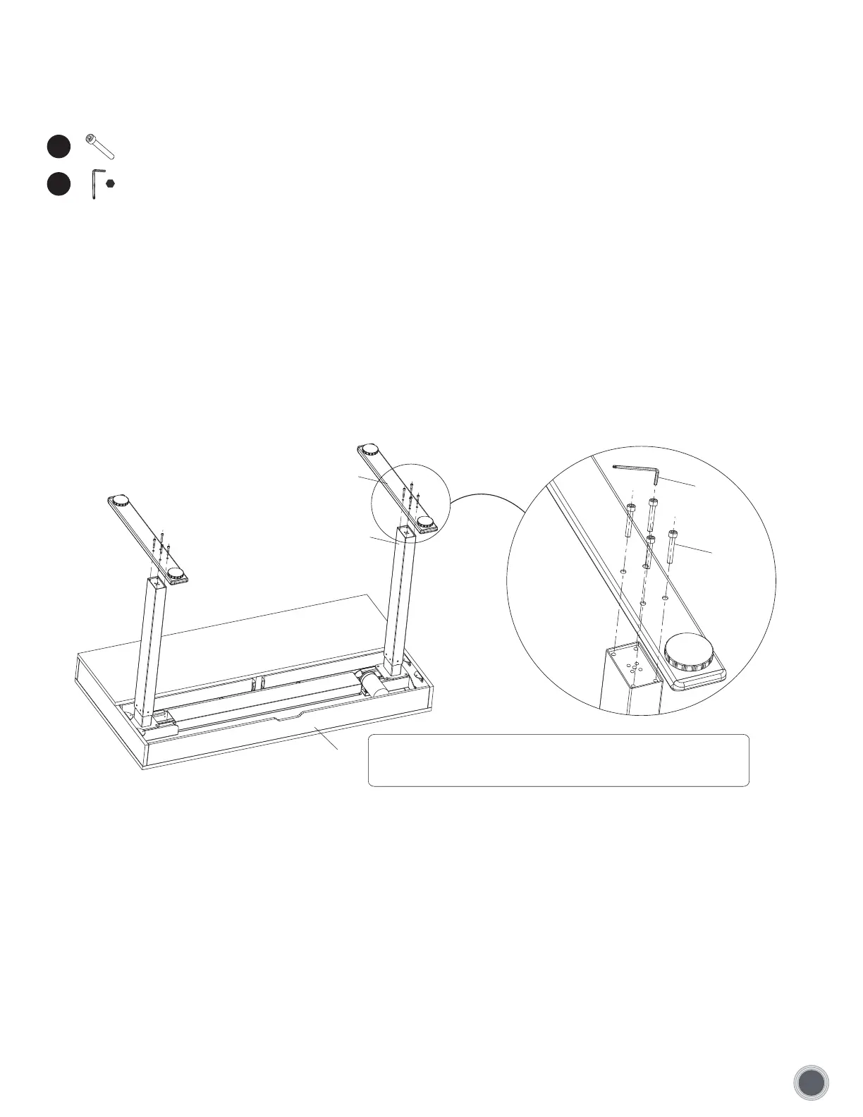 Attach the feet (4) to the lifting columns (2), and tighten the