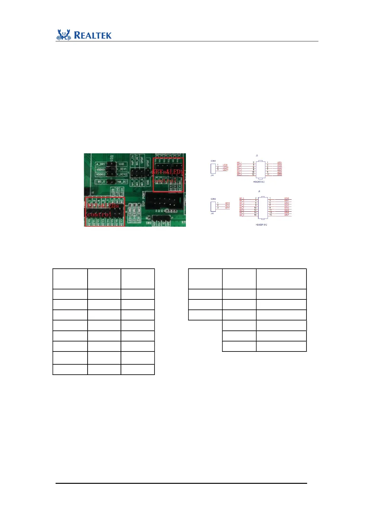 The default mapping table for LEDs and KEYs is shown as Table2-1. Control pins of
