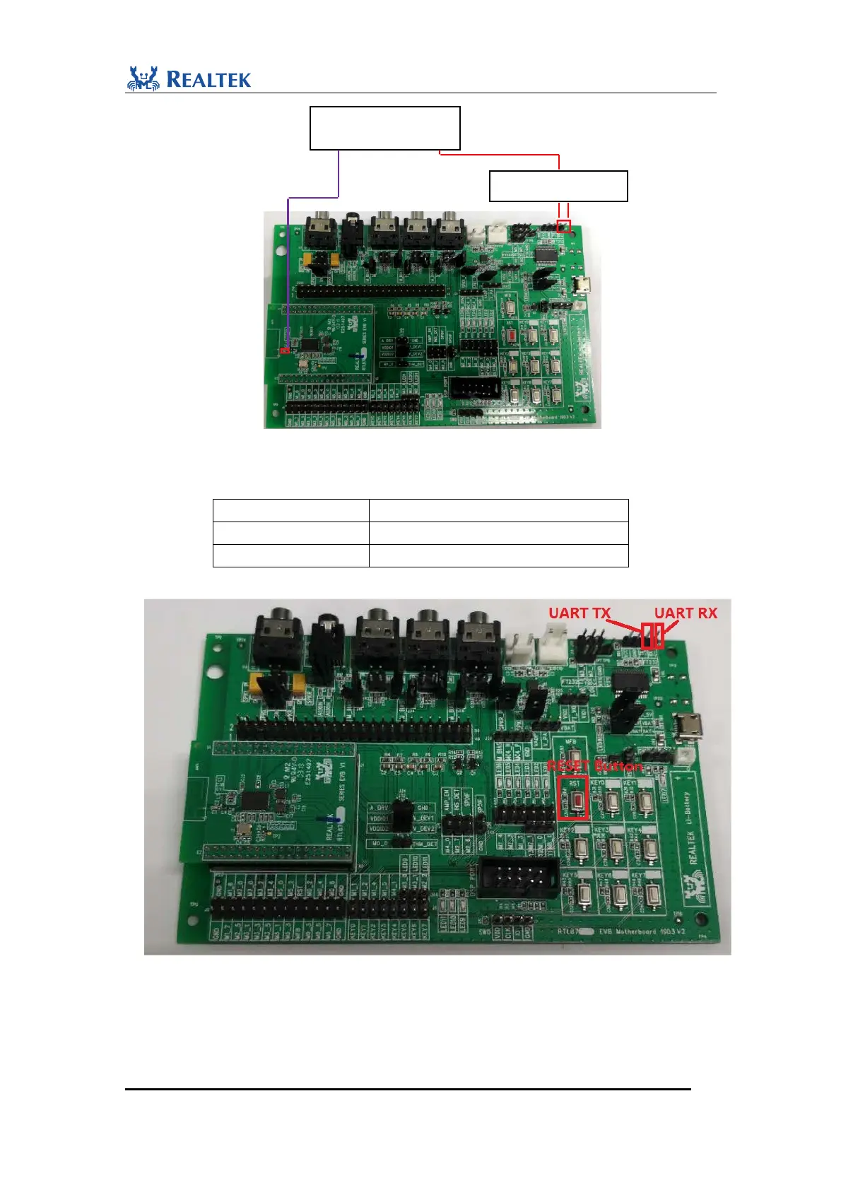 Figure 3-8 UART and RESET Button on RTL8773E Motherboard
