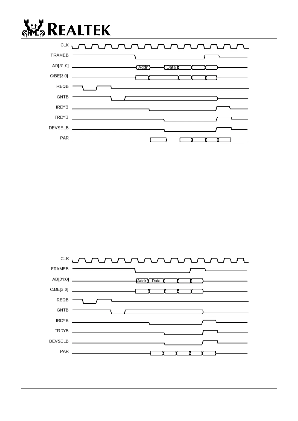 A Master Write operation starts with the RTL8169 asserting REQB. If GNTB is asserted within 2 clock cycles, FRAMEB,
