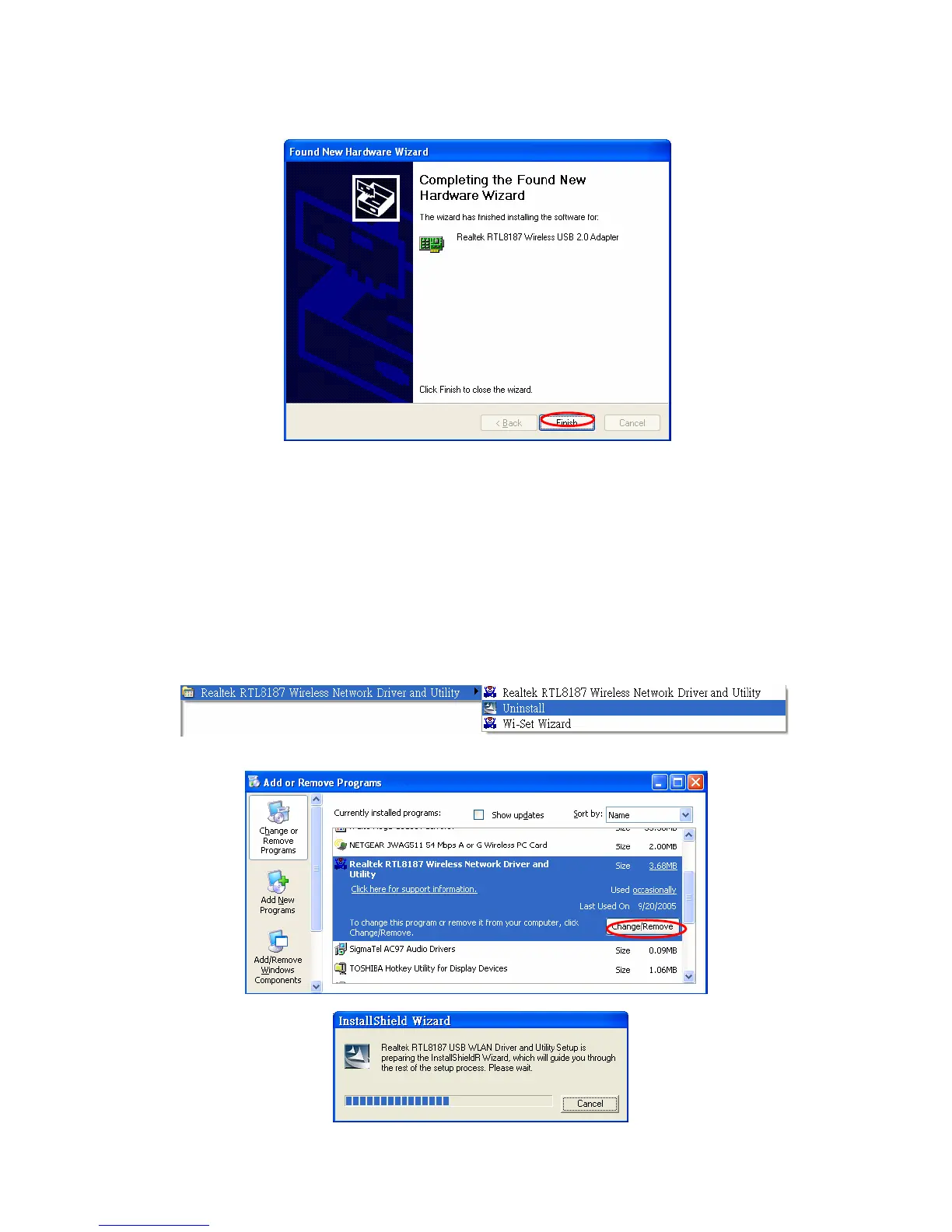 A. Uninstall the RTL8187SE WLAN Driver from “Start” “All Programs”