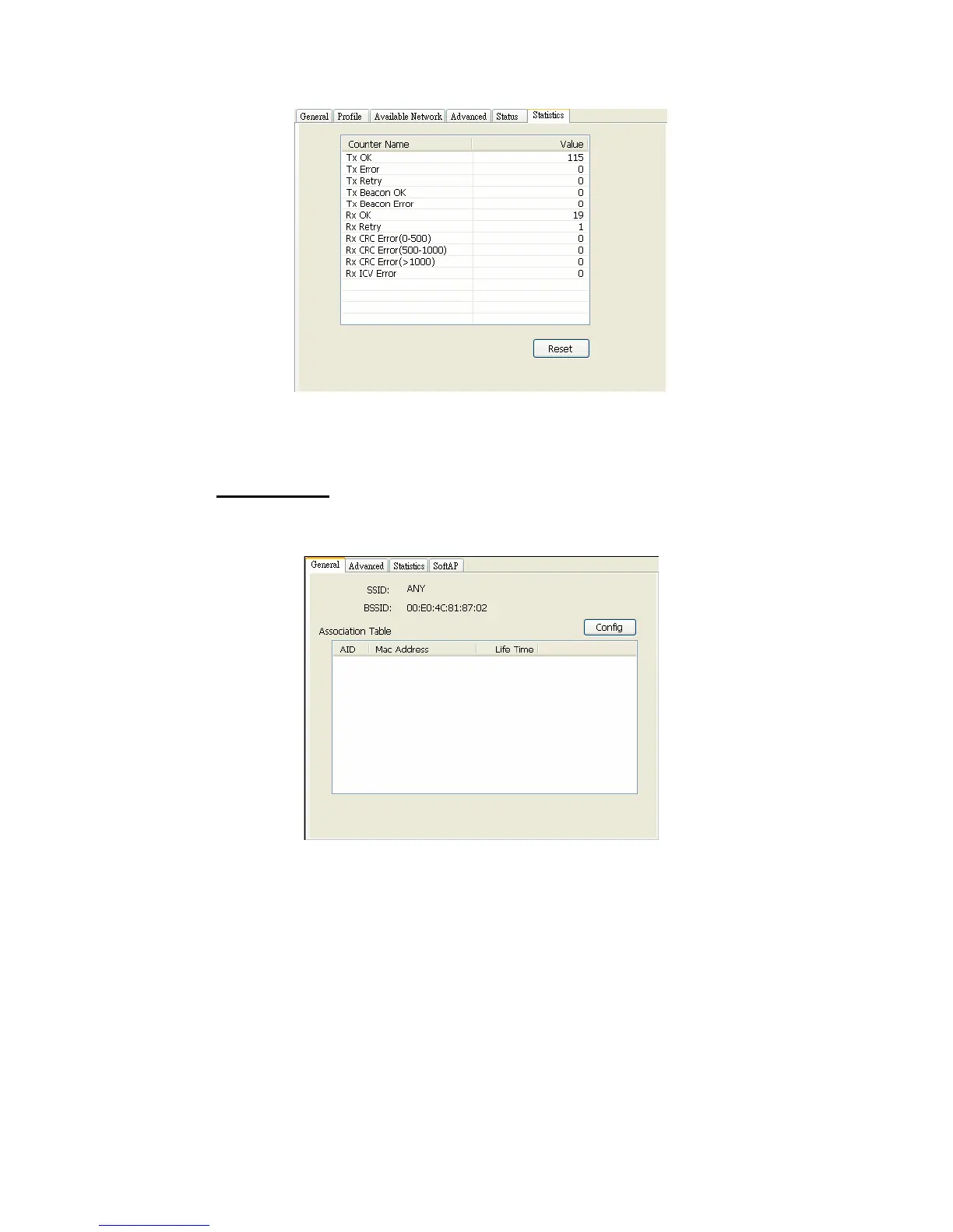 name, MAC address and list of joined stations.