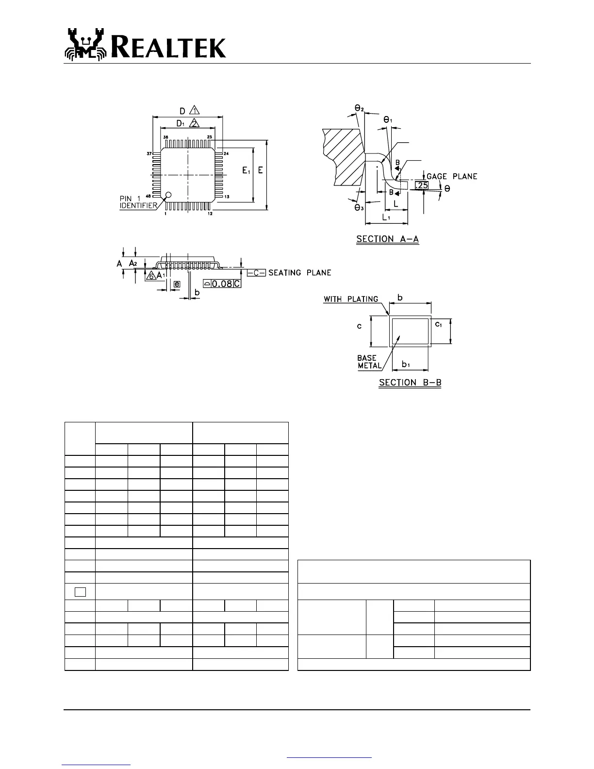 3.Dimension b does not include dambar protrusion.