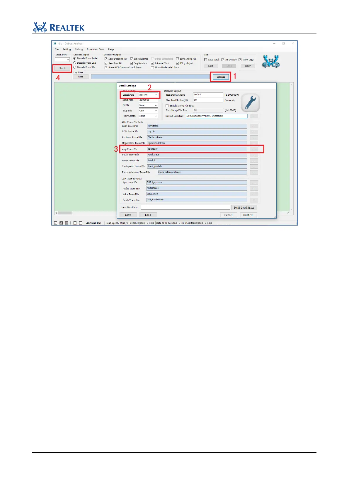 3. Click and load "App Trace File": Bee2-sdk-vx.x\ board\evb\ble_peripheral\bin\App.trace, will be updated at the