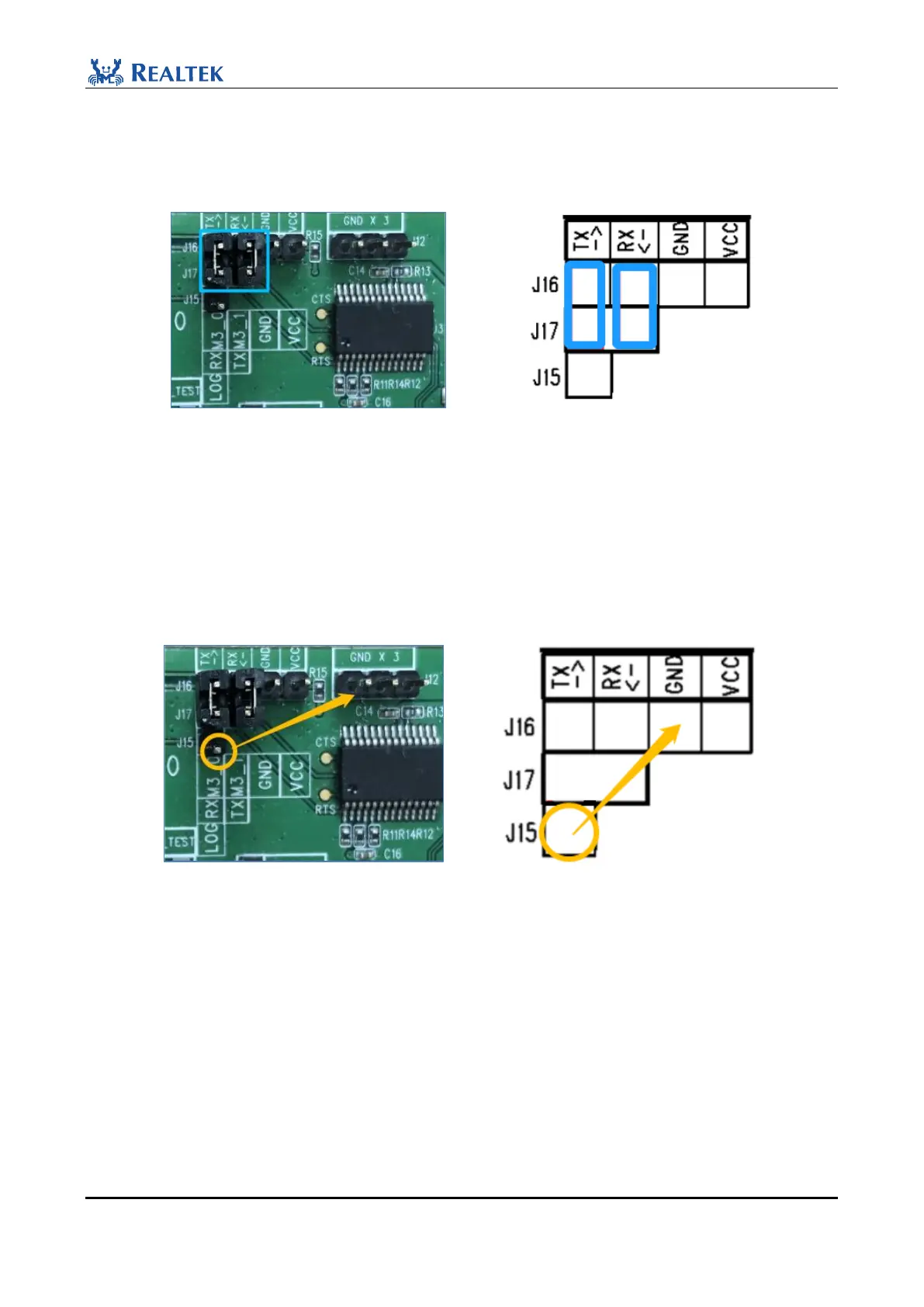 3. When downloading images, before powering on the EVB board, connect the LOG pin (P0_3 by default, the pin