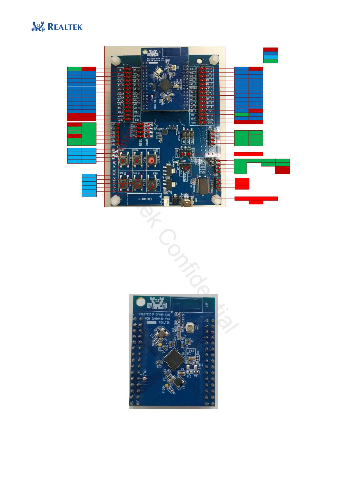 PCB antenna on daughter board is the same as the silkscreen mark of antenna on mother board. Daughter board is