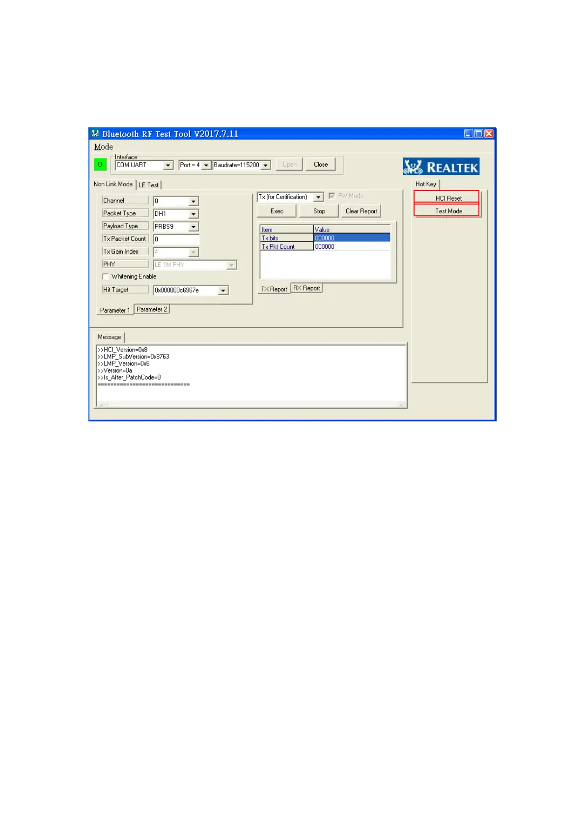 Step 3: After testing, click “HCI Reset” button to exit DUT Test Mode