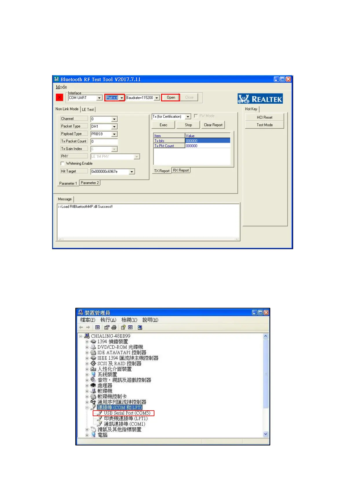 Realtek RTL8763BFR - Opening and Connecting RTLBTAPP; Selecting the Correct Interface