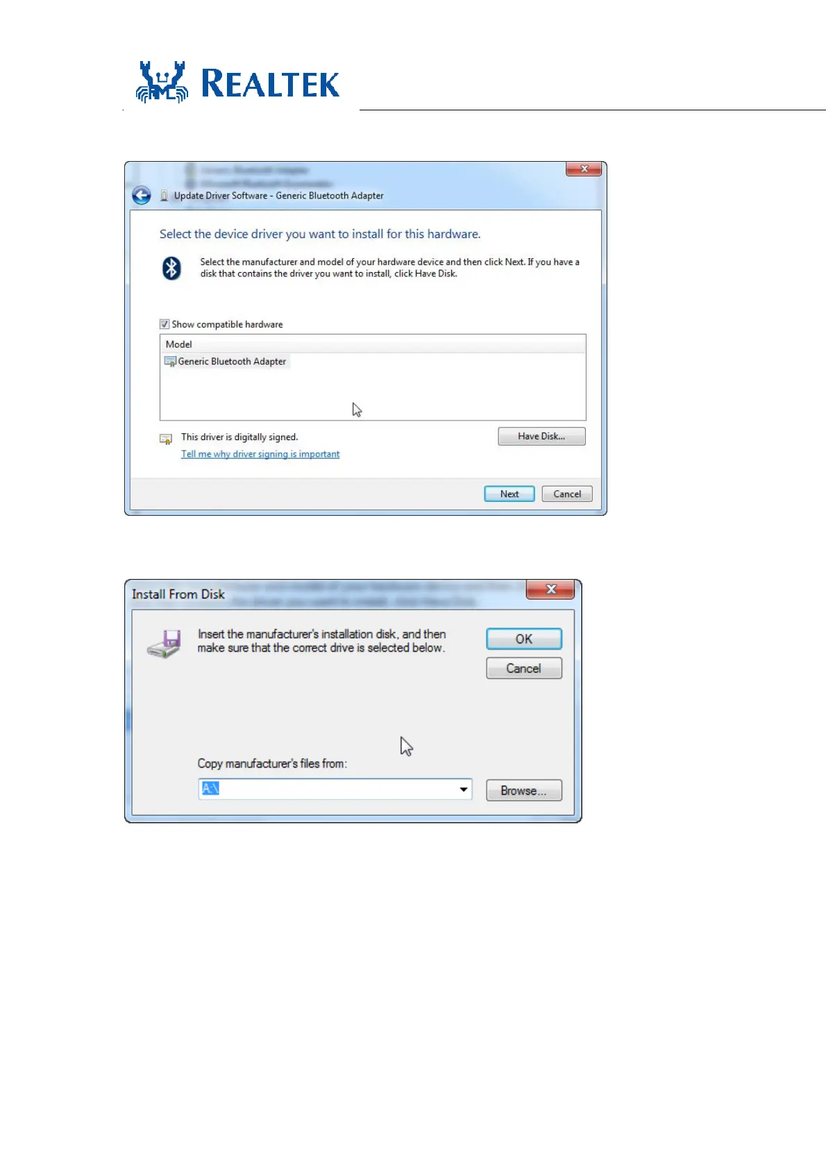 F. Finish step “E” then select “Have Disk..”