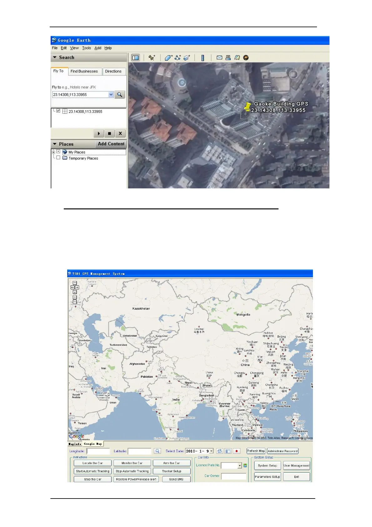 Track by the SMS Center Software & MapInfo Map (Optional)