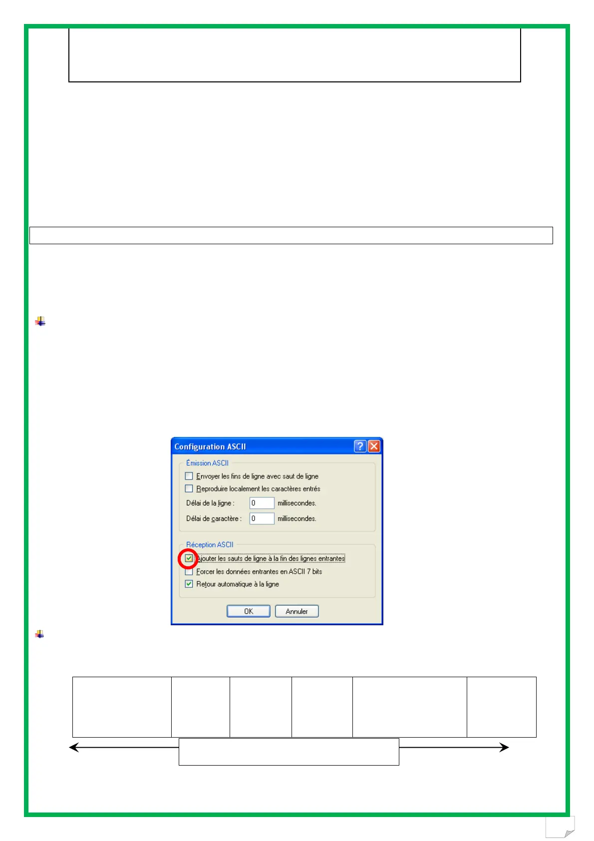 You must authorize line feeds to visualize the frames using the hyperterminal: click on « properties » in
