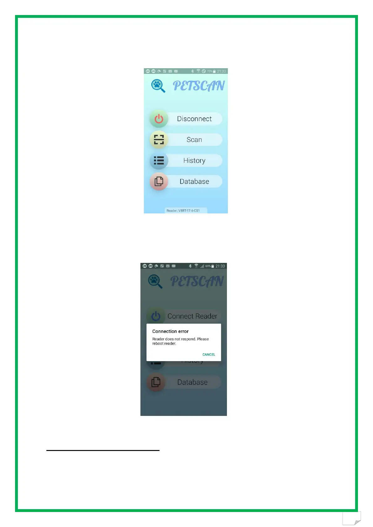 1/ The phone finds a reader and connects. In this case, the blue "LED" of the reader changes from flashing to