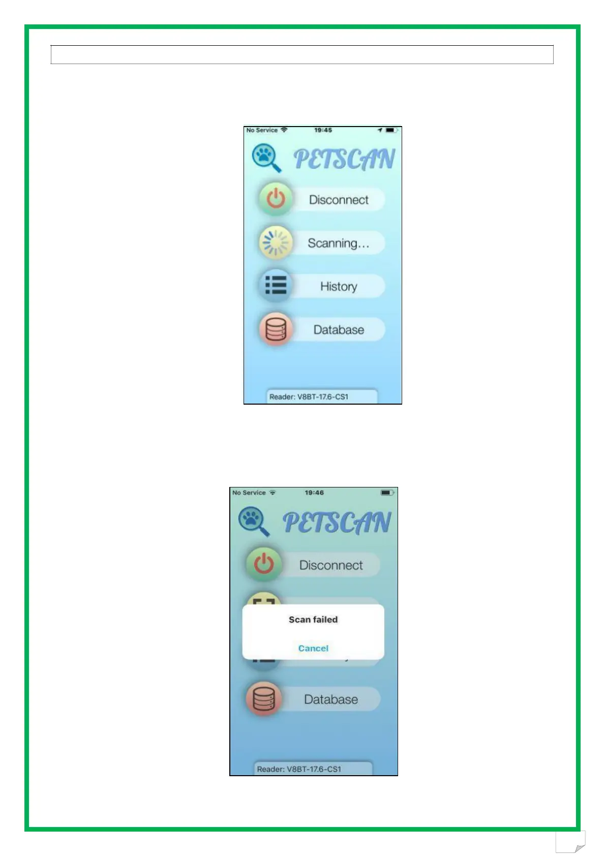 The reader then searches for a "Chip" near it, 10 to 12 cm for about 25 seconds, and "Scanning" is displayed: