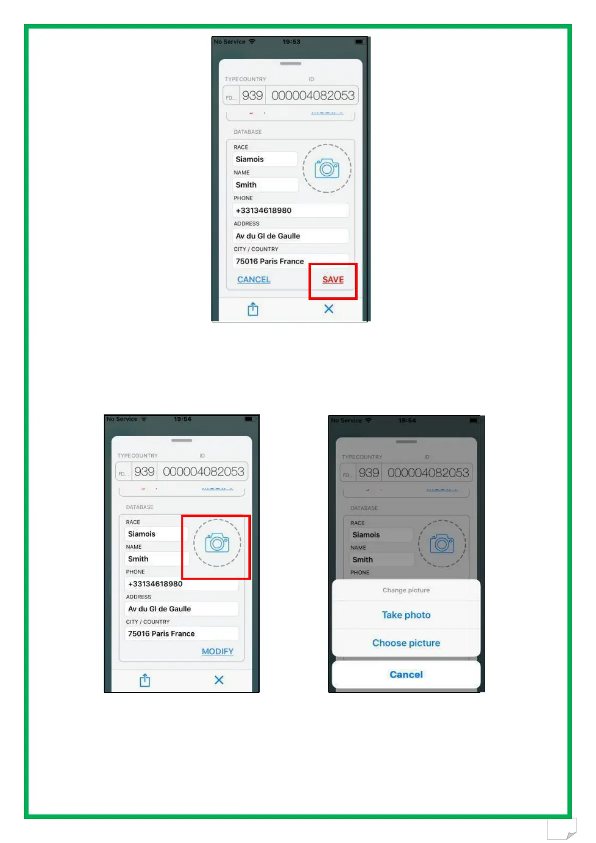 After entering one or more fields, select SAVE, and the data will be saved on the phone database or on