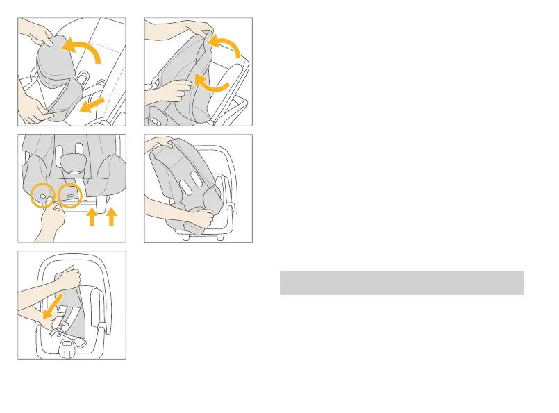 • Desfaceți husa din cârligele de sub scoica auto pentru bebeluși.