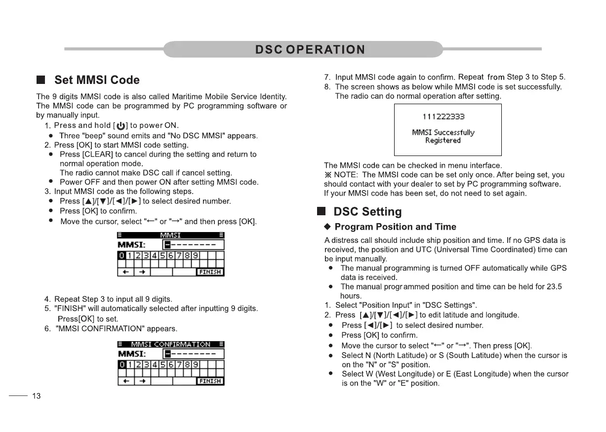 Recent RS-38M - DSC OPERATION; Set MMSI Code; DSC Setting; Program Position and Time