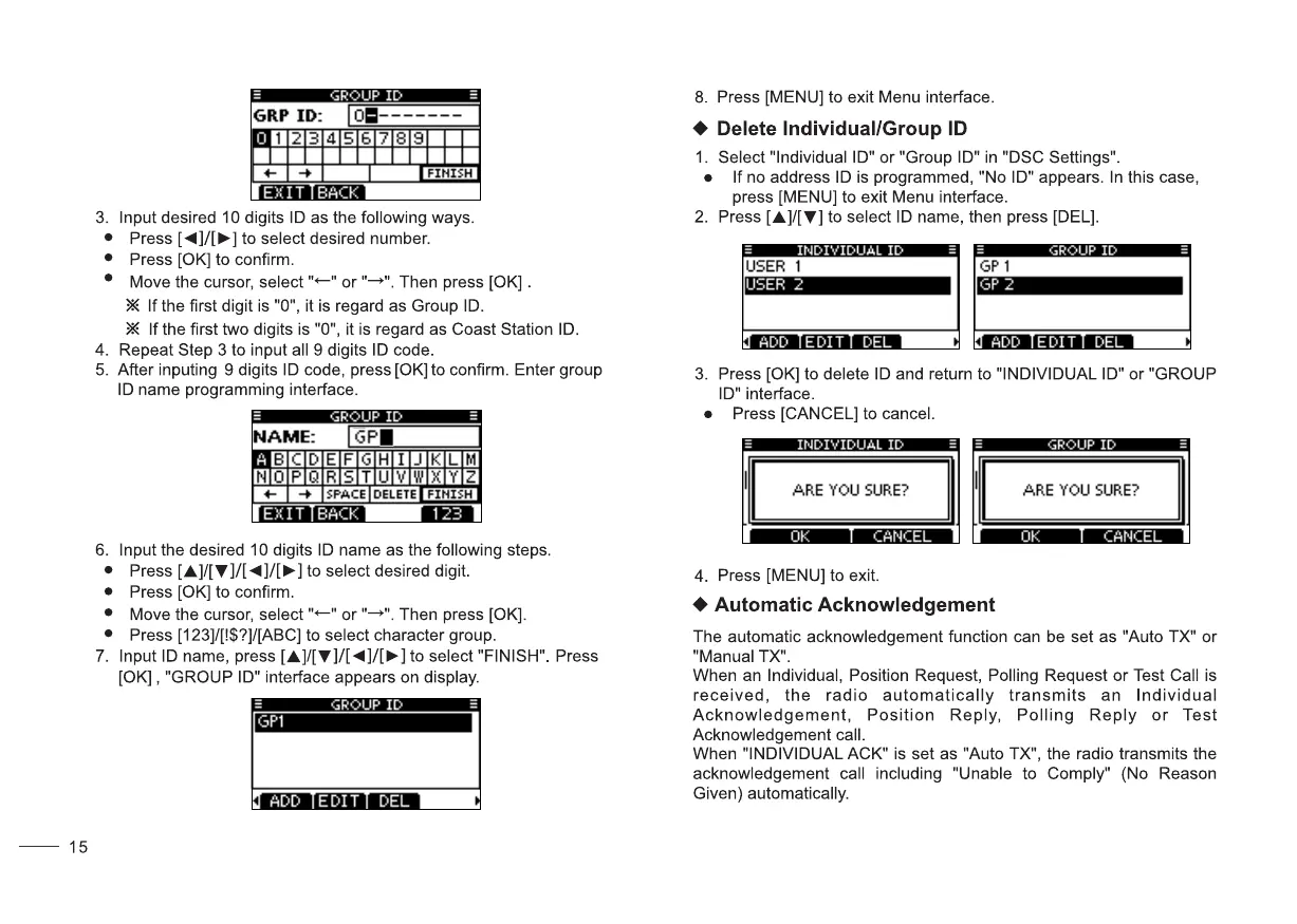 Recent RS-38M - Delete Individual;Group ID; Automatic Acknowledgement