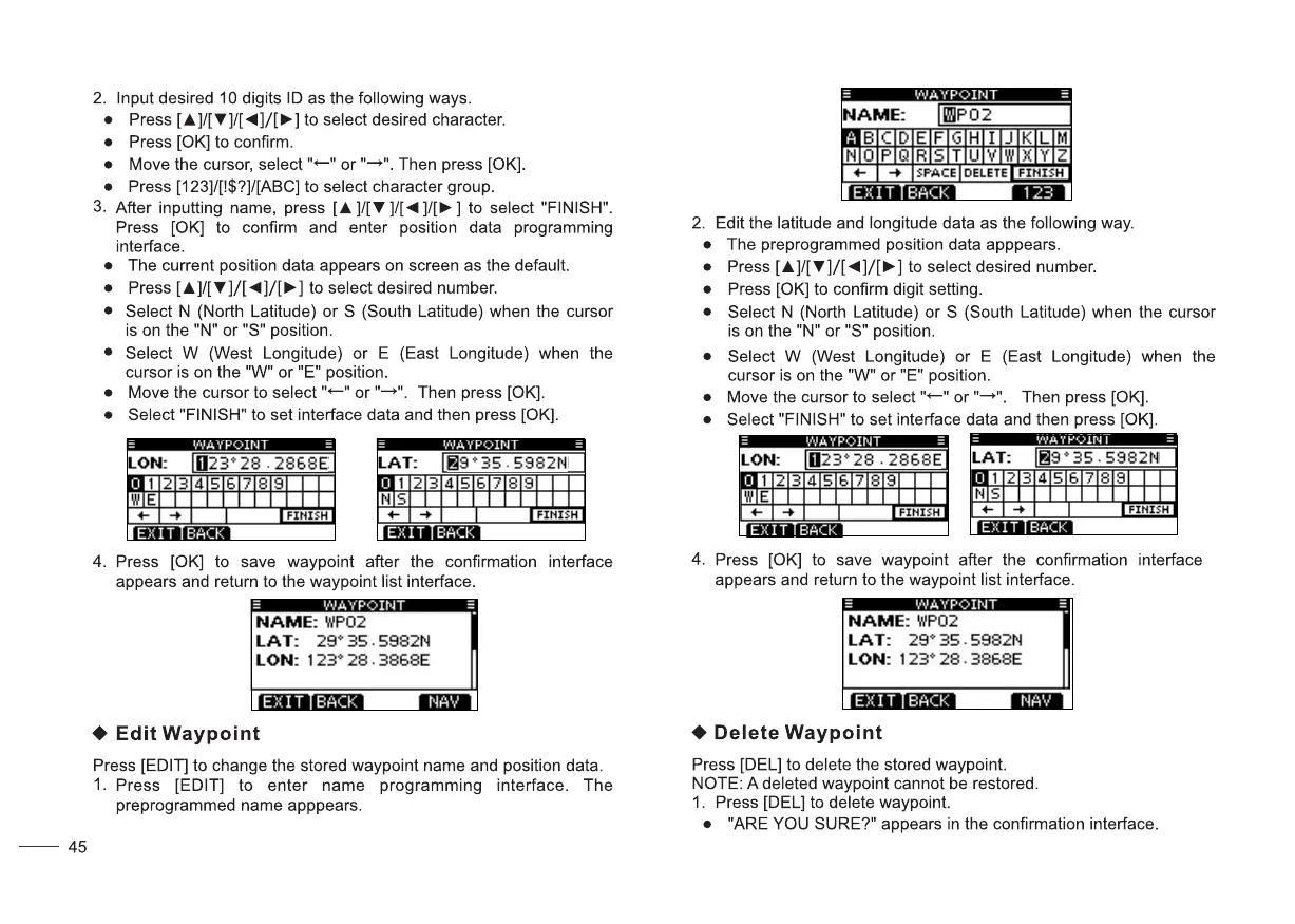 Recent RS-38M - Edit Waypoint; Delete Waypoint