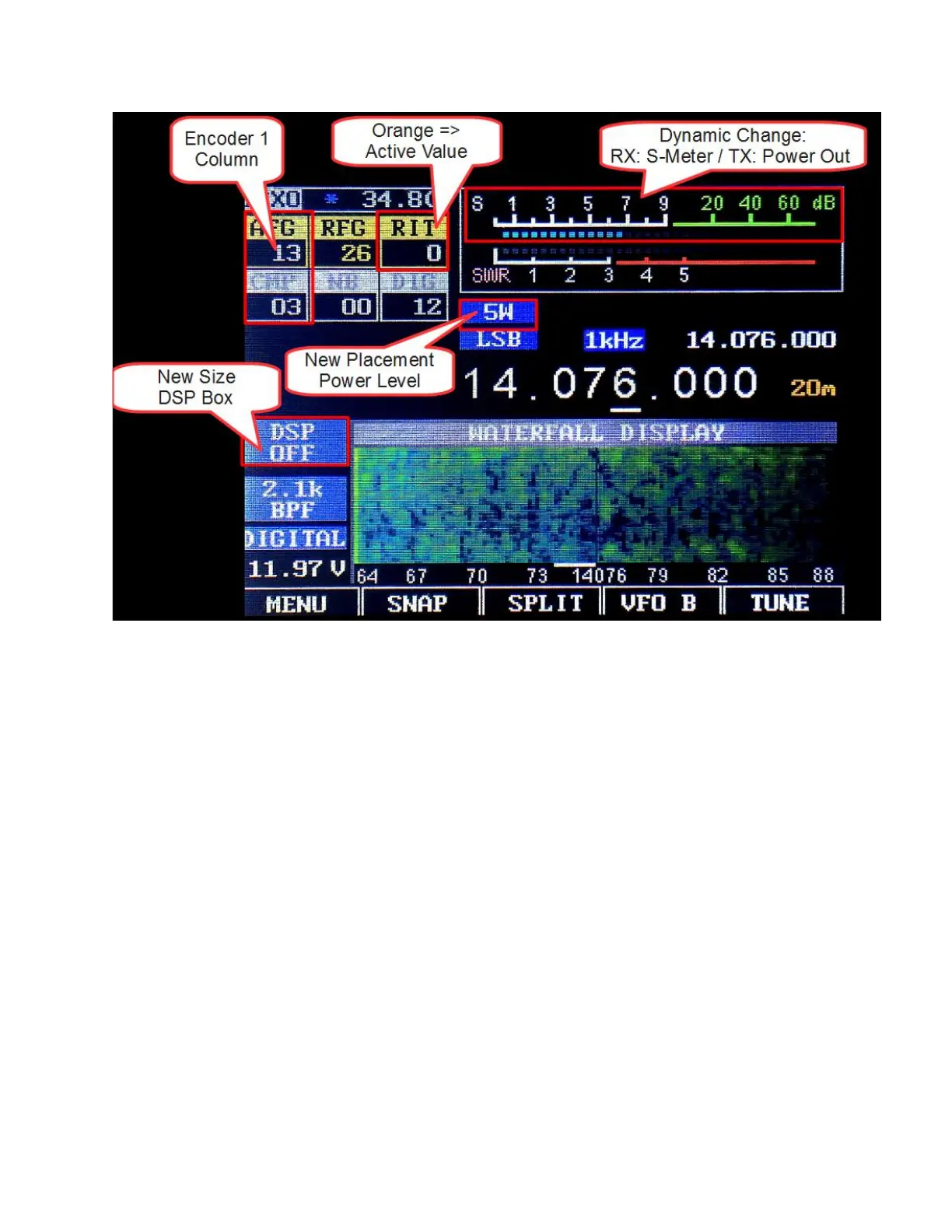 Shows the name of the currently selected RX (!) audio filter. Top line is the upper