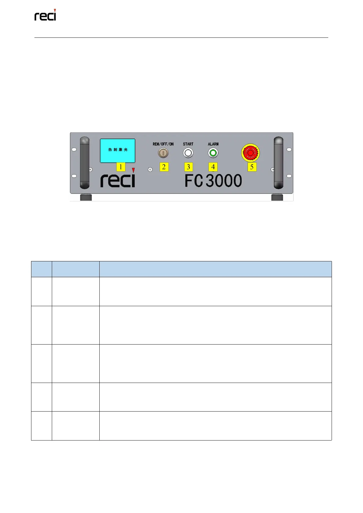 Figure 4.1 the font panel of FC3000 (the same as other single module Fiber Lasers)