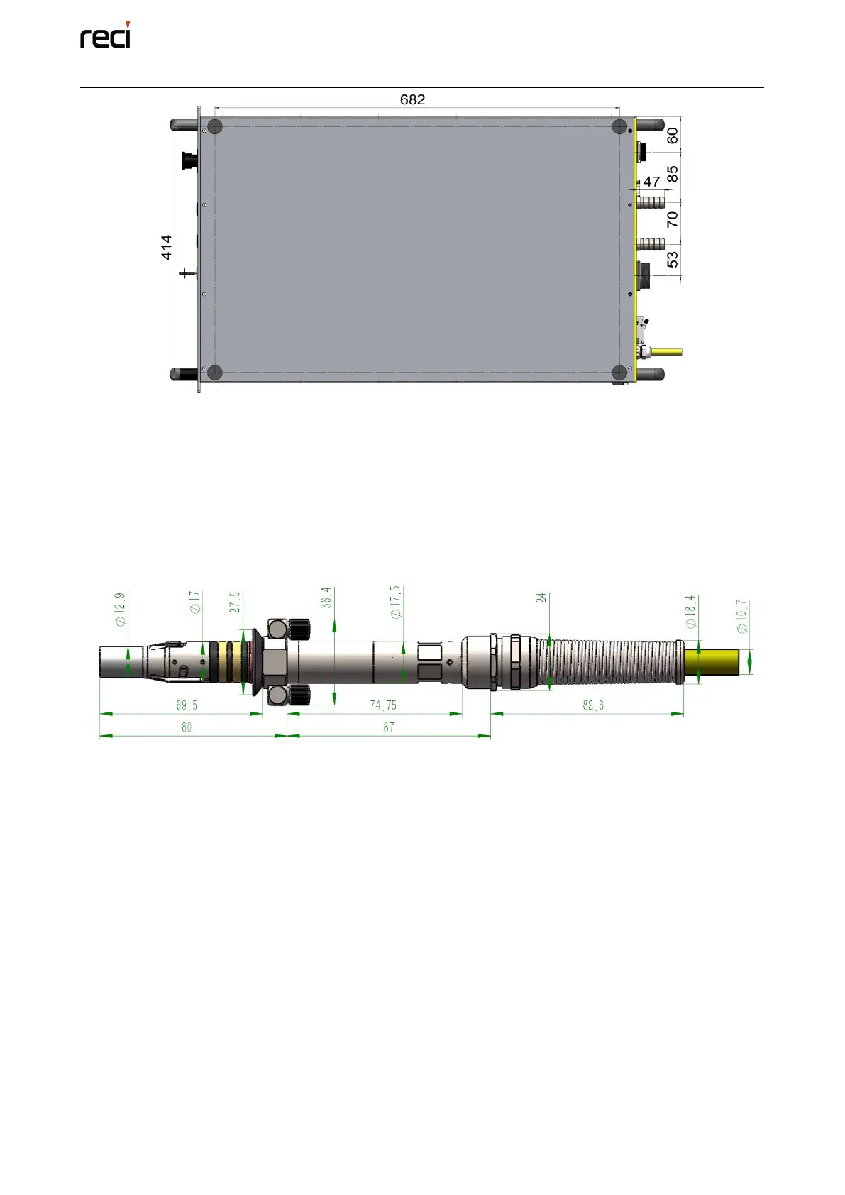 Figure 3.3(b) Bottom view of 3000W fiber laser (unit: mm)
