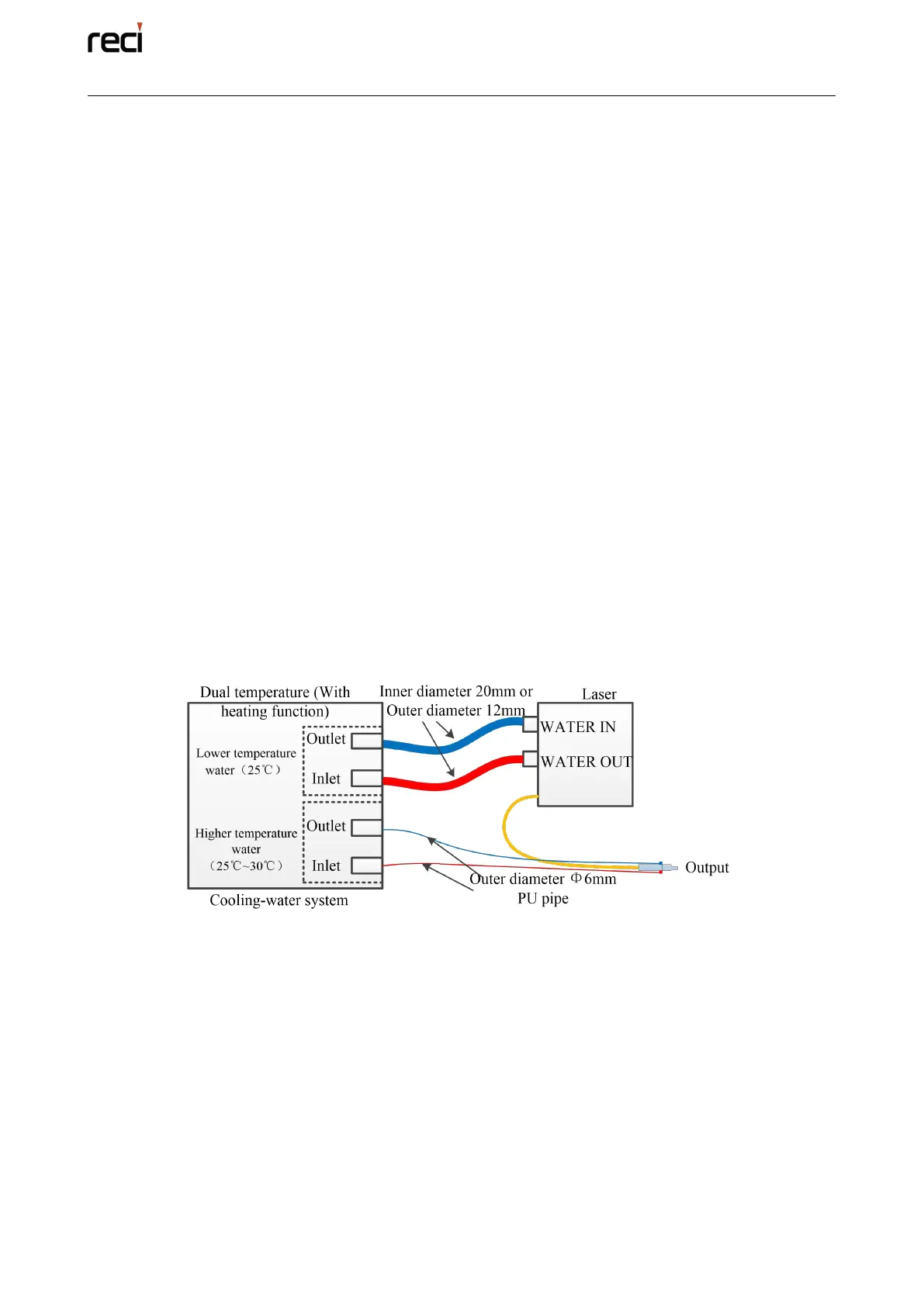 inlet of the water cooler is connected with the “WATER OUT” of the laser, and so is