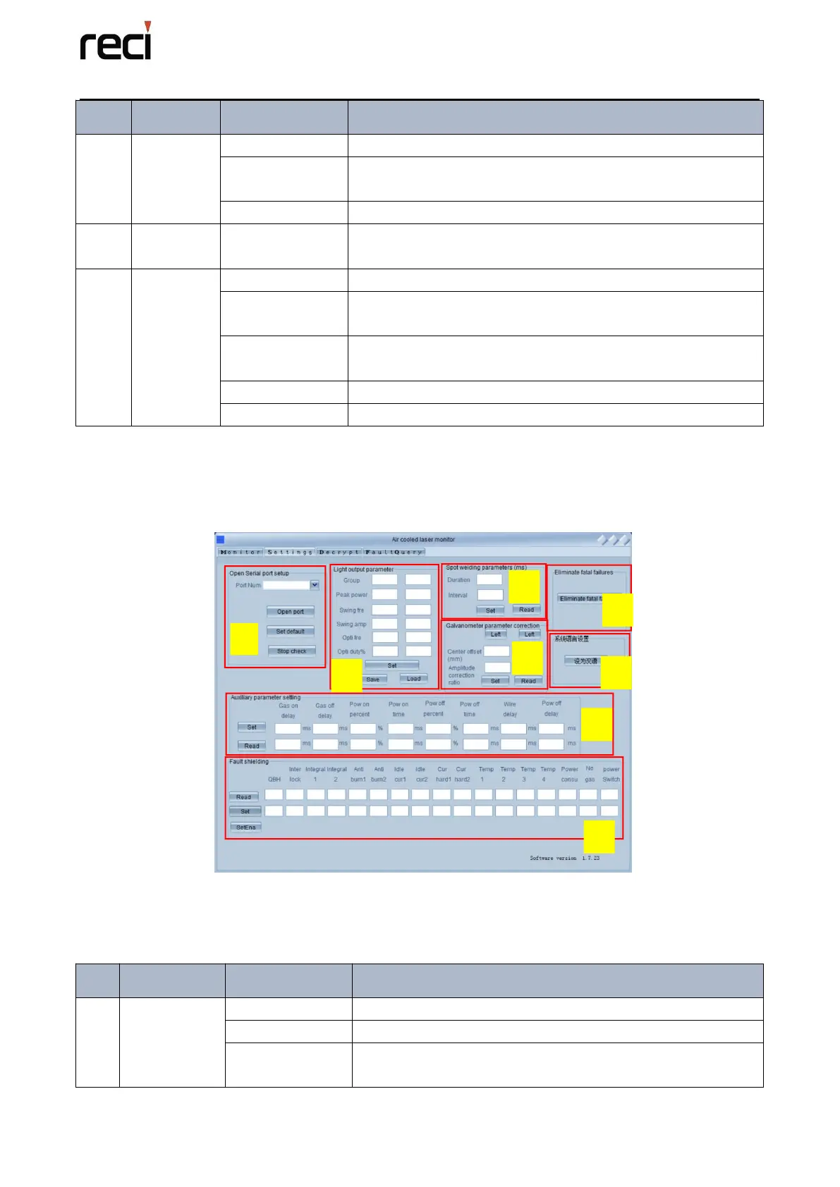 The function of the setting page is shown in the table below: